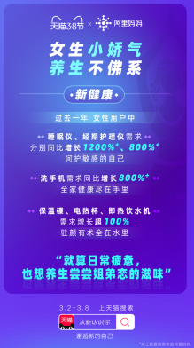 在“新健康”方面,女性在養(yǎng)生上展現(xiàn)出的態(tài)度絲毫不佛系,甚至隨著環(huán)境、心理的變化,女性對(duì)健康的訴求更細(xì)分、更長(zhǎng)期。工作和生活上的焦慮毫不掩飾地體現(xiàn)在不同產(chǎn)品上。可以看到,睡眠儀在過(guò)去一年暴漲,需求同比增長(zhǎng)超過(guò)1200%;經(jīng)期護(hù)理儀、洗手機(jī)等的增長(zhǎng)幅度也超過(guò)800%。