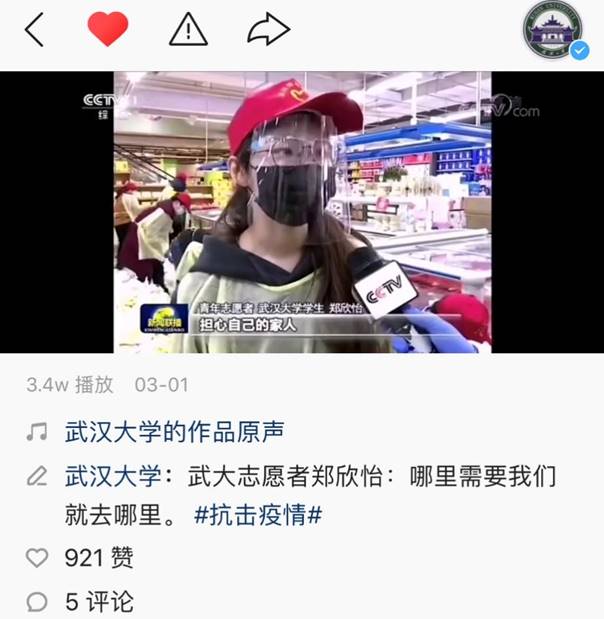 自強、弘毅、求是、拓新,在這場突如起來的疫情中,每個武大人都遵循學校校訓,在各自的崗位發揮力量。而武大作為疫區中心的高校,在輸送優秀人才之余,更是主動承擔起傳播知識、打破恐慌焦慮等責任,借助快手等短視頻平臺的天然優勢,通過信息透明化、正能量傳遞,讓更多人走進武漢的真實情況。