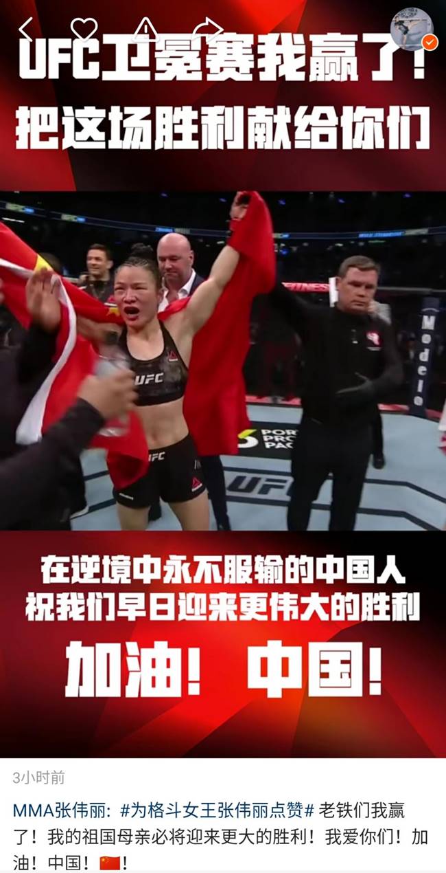 三名裁判中兩人判定張偉麗獲勝,她衛冕成功了,并且再次刷新了中國人在UFC的歷史。