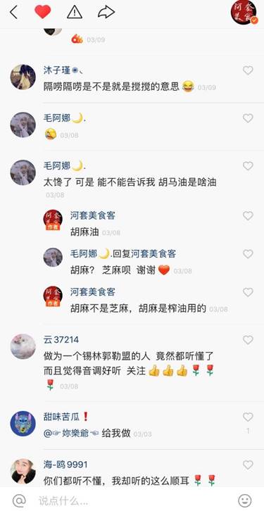最讓他們開心的,是有許多人透過美食和方言愛上了河套文化:“內(nèi)蒙的巴彥淖爾市和陜西、山西一些地方的面食文化很相似,同屬于河套地區(qū)?,F(xiàn)在老鐵們經(jīng)常在視頻下交流河套文化,還有粉絲探討河套地區(qū)不同行政區(qū)劃內(nèi)的方言差異,特別親切?!?/p>