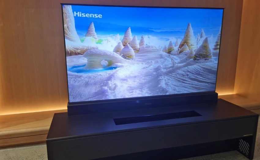 電視形態的未來,則要看可卷曲屏幕激光電視。開機時,屏幕從機體中升起,關機時隱藏在機體內部,做到需要時才出現,實現電視與家居環境的融合設計,真正體現顯示無處不在。
