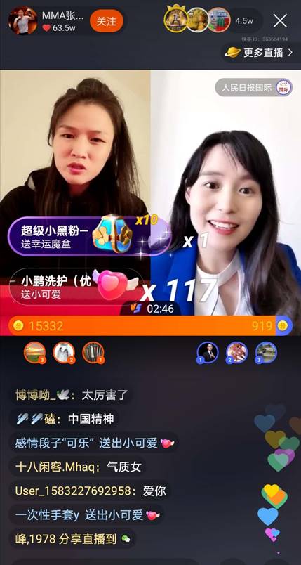 3月19日12點(diǎn)30分開始,身在美國的張偉麗通過自己的快手直播間先后與“人民日?qǐng)?bào)國際部”、主持人王為念、“快手體育”特邀主持人蘇航、知名解說員蔡志賢等連麥,接受線上直播采訪。上百萬快手老鐵見證了這場直播采訪。