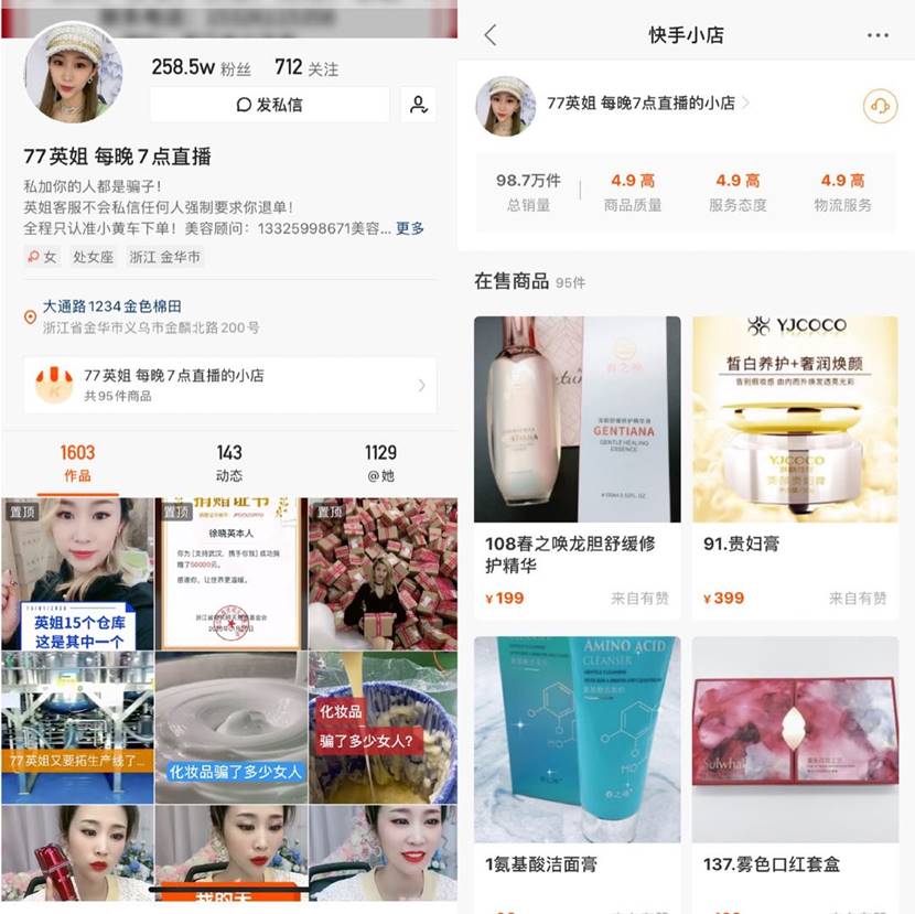 一年半之前,77英姐還是一位來自義烏的護膚品代工廠老板。如今,77英姐在快手已經有超過250萬粉絲,是快手最具代表性的美妝主播之一,其自有品牌“春之喚”也成為國產美妝品牌領域的新軍。