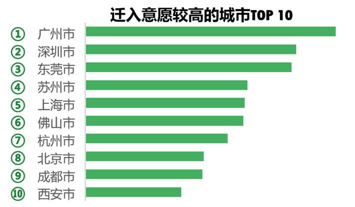 遷入意愿較強城市TOP10發布:一線及省會城市遷入意愿較高