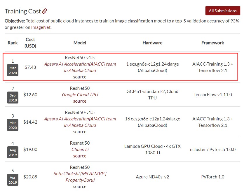(阿里云包攬訓練時間、訓練成本、推理延遲以及推理成本四項第一)