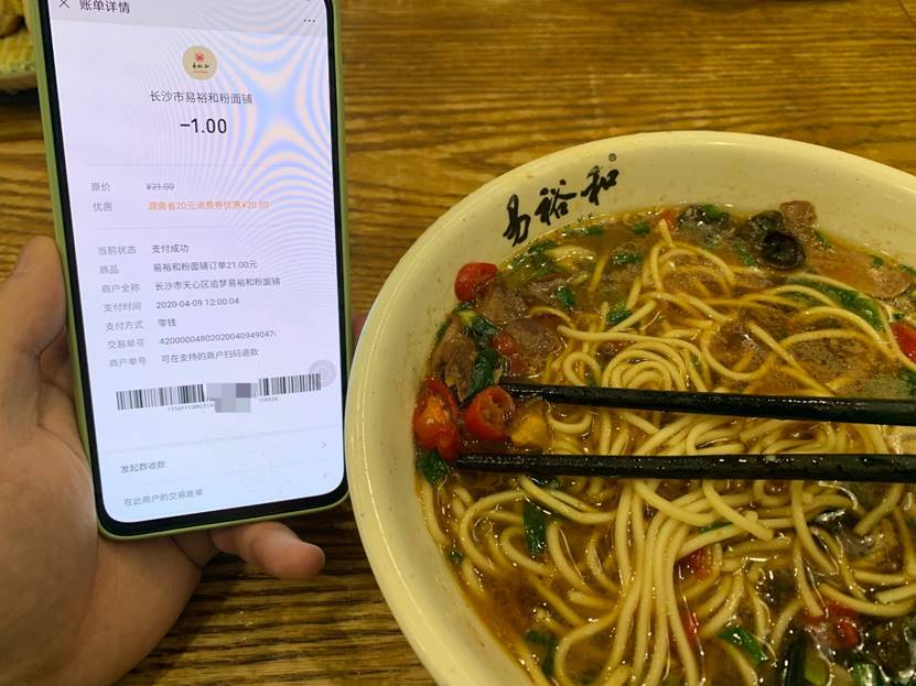 在湖南省境內34萬開通微信商業支付的商家中,消費券都可廣泛使用,餐飲、零售業等小店客單價大幅提升。