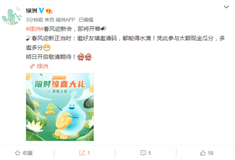 今日,綠洲官方微博發(fā)文表示,春風迎新正當時,邀好友填邀請碼即可憑水滴參與瓜分大額現(xiàn)金。事實上,這并不是綠洲首次探索現(xiàn)金拉新,據(jù)速途網(wǎng)觀察,春節(jié)期間綠洲也曾有過嘗試。
