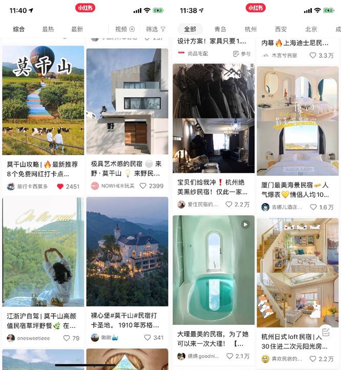 隨著用戶體量的增長,多個垂直品類在小紅書成長迅速,旅游出行是小紅書2019年僅次于美妝的第二大品類,僅民宿相關的筆記就有超過46萬條。在未來3個月內,還將陸續有不少于1000家精品民宿品牌入駐小紅書。