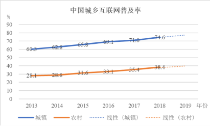 ▲ 中國城鄉互聯網普及率 | 來源:人民大學《中國互聯網普惠與減貧研究報告》
