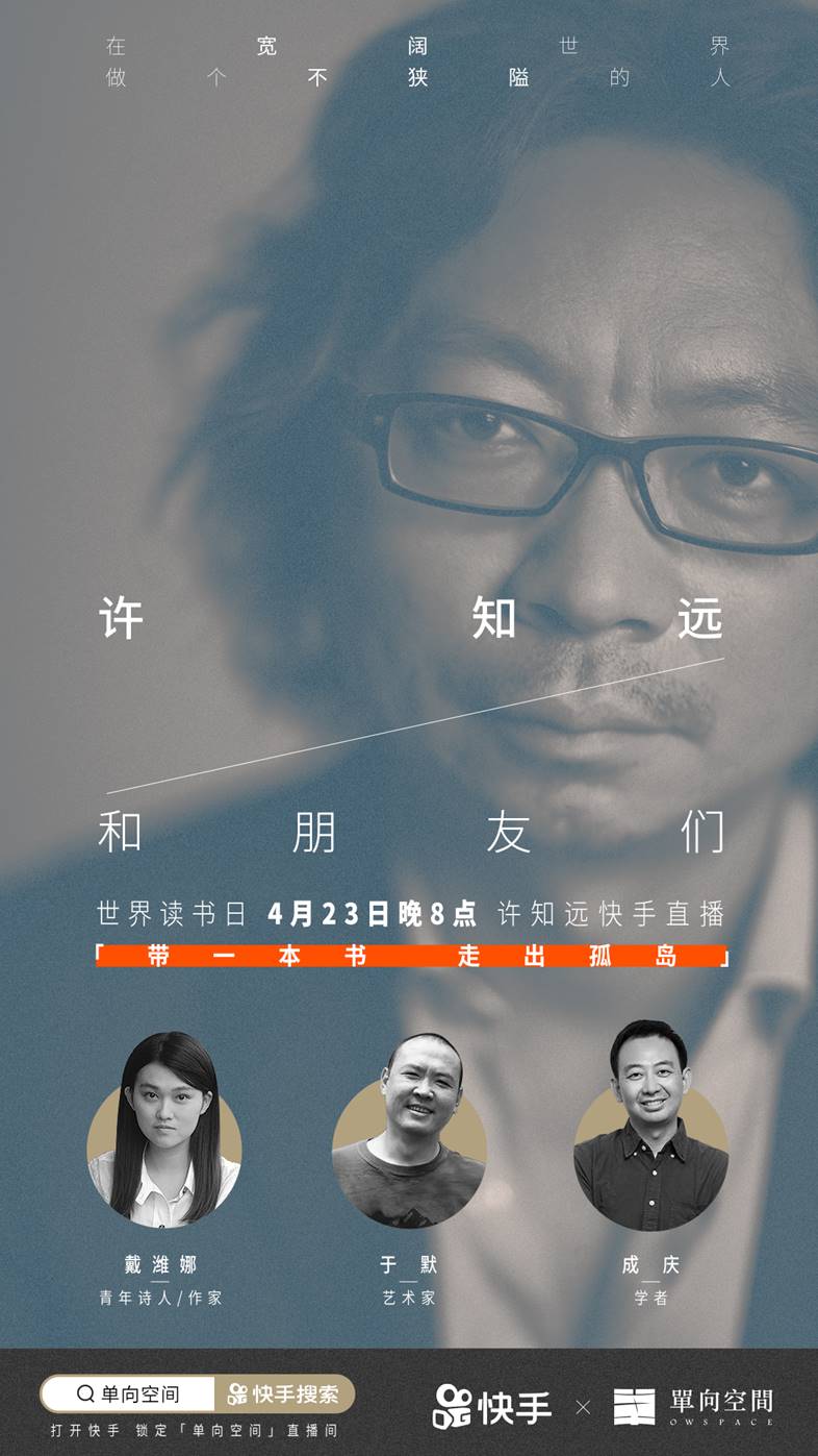 單向空間創(chuàng)始人許知遠在晚上8點接過接力棒,跨界快手,直播連麥詩人戴濰娜、藝術(shù)家于默、學者成慶三位好友,暢談近期的生活和閱讀感悟,在思想的交流和碰撞中,傳遞閱讀與思辨的魅力,連麥中好友們分別向快手老鐵推薦了《哈查爾日記》、《給青年的十封信》以及《日本美術(shù)史》三本作品。