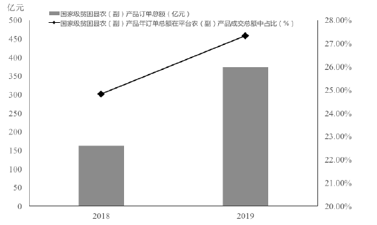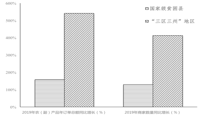 《報告》顯示,截至2019年上半年,832個國家級貧困縣網(wǎng)絡(luò)零售額已達到1109.9億元。2019年,僅在發(fā)展最快的農(nóng)產(chǎn)品上行第一平臺拼多多上,商家注冊地址位于國家級貧困縣的年訂單總額高達372.6億元,“三區(qū)三州”年訂單總額達47.97億元,其中絕大部分成交訂單為農(nóng)(副)產(chǎn)品。