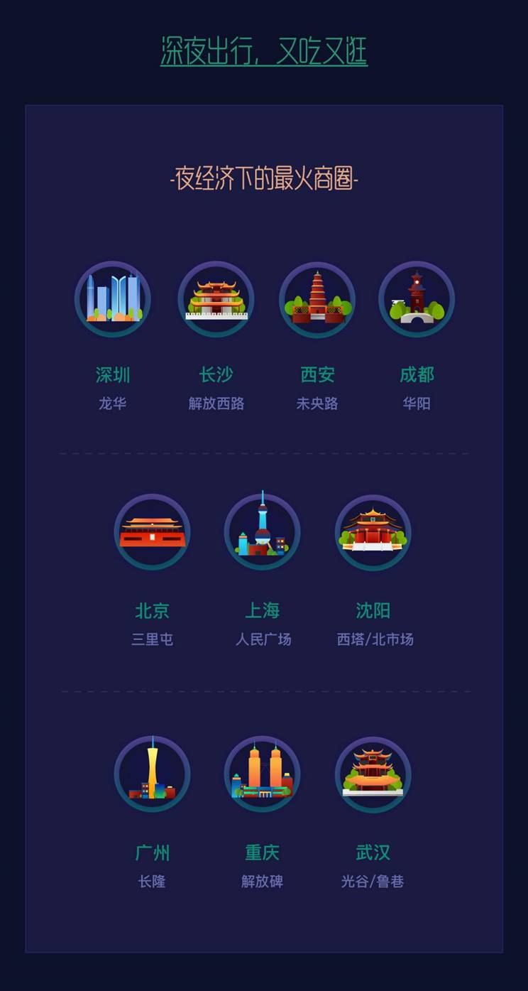 夜宵江湖戰況“激烈”,烤串成為多個城市美團用戶最愛的夜間外賣。面包甜點、小龍蝦、火鍋、奶茶等其他宵夜品類也有明顯增長,折算成等價食物,約等于北京人民吃掉33萬串烤串,武漢人民吃掉22萬串烤串,上海人民吃了24萬只小龍蝦,逛吃逛吃”成為夜晚首選。北京人民最愛三里屯,重慶人都去解放碑。
