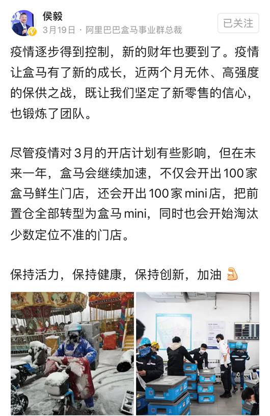 事實(shí)上,此前盒馬總裁侯毅曾表示過,今年的“雙百戰(zhàn)略”將新開100家盒馬鮮生、100家盒馬mini。為了保持健康體魄高速發(fā)展,同時(shí)也將策略性的淘汰少數(shù)定位不準(zhǔn)的門店。