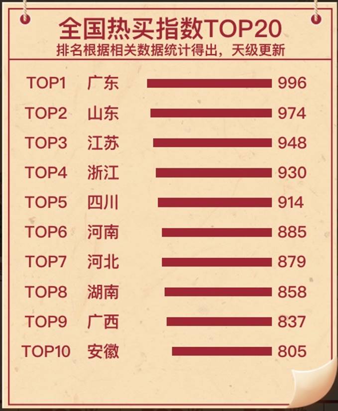 吃著湖北小龍蝦、喝著青島啤酒成為消費者選擇的流行CP組合。廣東奪魁“最敗家”省份,緊隨其后的是山東、江蘇、浙江、四川四省。