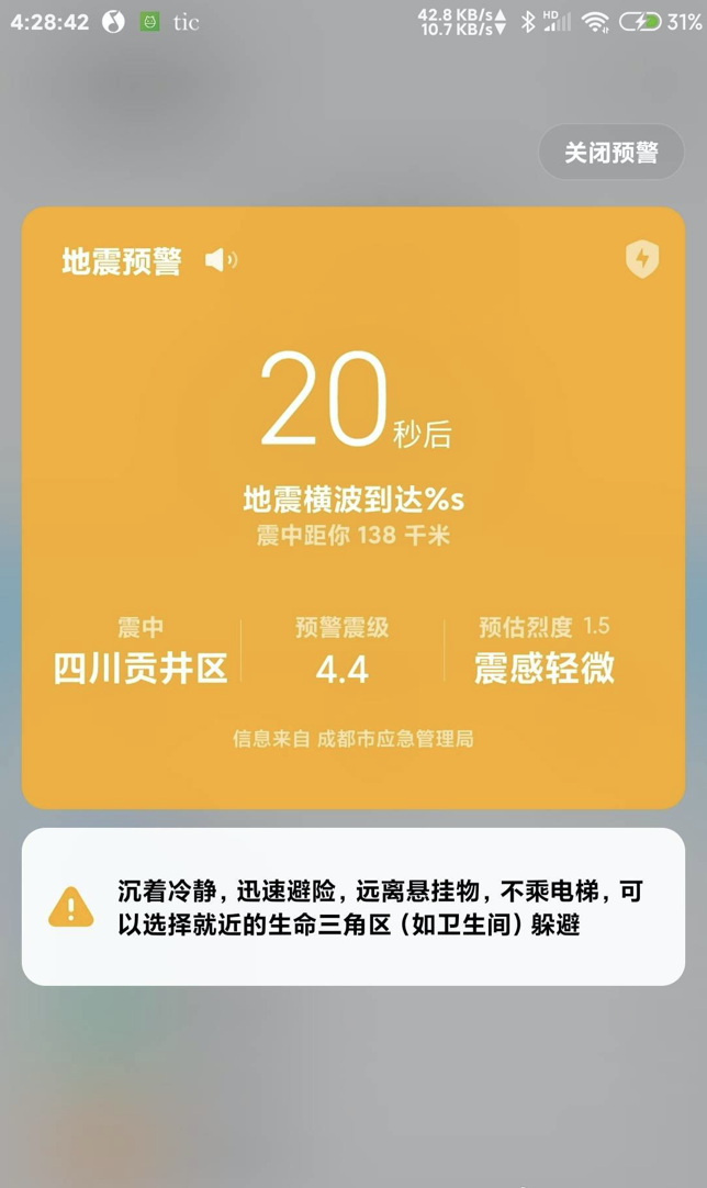 例如2019年12月9日在四川省綿陽市安州區發生4.6級地震,小米MIUI11內置的地震預警系統做到了提前13秒預警地震信息;2019年12月18日,四川內江發生5.2級地震,小米手機用戶提前10秒收到地震預警提示;2020年2月16日,四川自貢市榮縣發生4.4級地震,小米手機用戶提前20秒收到了地震預警提示。