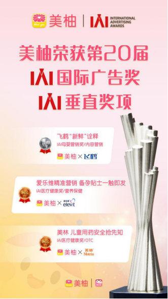 速途網(wǎng)5月28日消息(報道:吳佳馨)近日,第20屆IAI國際廣告獎執(zhí)委會正式公布獲獎名單,純女性互聯(lián)網(wǎng)平臺美柚憑借“美柚-飛鶴‘新鮮’詮釋”、“美林·兒童用藥安全搶先知”、“愛樂維精準營銷·備孕貼士一觸即發(fā)”等案例在IAI母嬰和醫(yī)療健康營銷領域獲多項大獎。