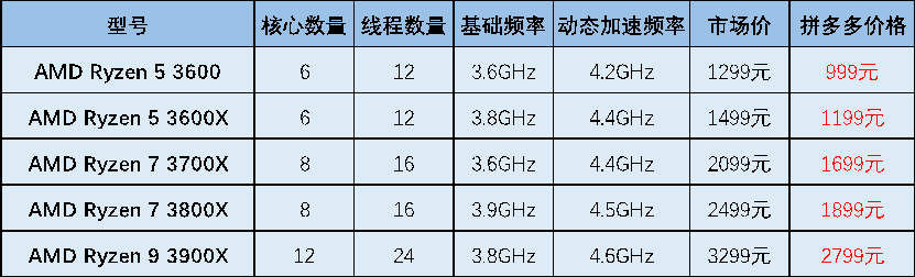 速途網(wǎng)6月3日消息(報道:李楠)今天上午10點,拼多多上線“AMD盒裝CPU萬人團”活動,五款當紅CPU組團上陣,屆時下單將享受300-600元的特惠補貼,這也創(chuàng)下了三代銳龍自發(fā)布以來的最低價格, 活動一上線迅速獲得眾多攢機發(fā)燒友關注。參與本次活動的產(chǎn)品型號包括:Ryzen 53600、Ryzen 5 3600X、Ryzen 73700X、Ryzen 7 3800X以及Ryzen 93900X。