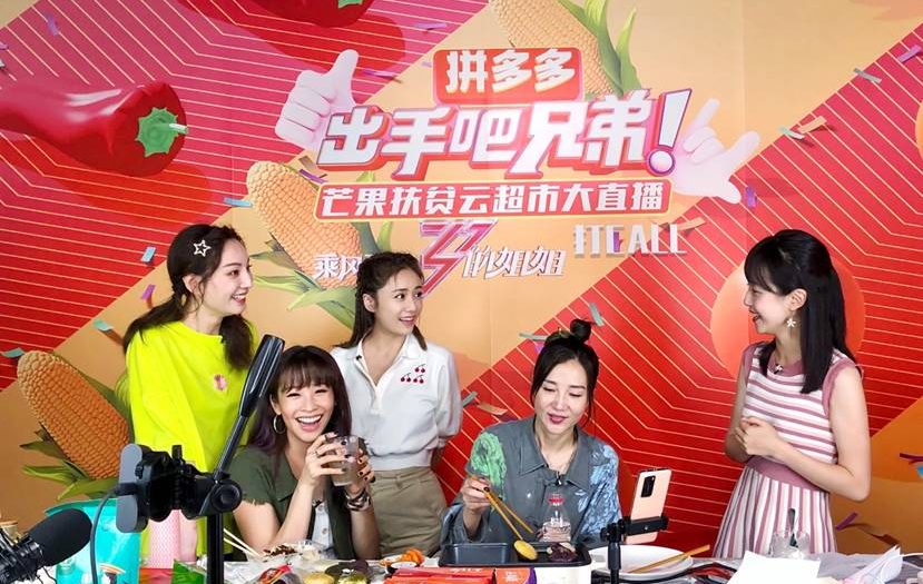 在近500公里外的湖南省會長沙,也有一群“特殊的伙伴”進入拼多多直播間,為江永夏橙加油打氣。當天下午,劉蕓、阿朵、袁詠琳、鄭希怡四位“乘風破浪的姐姐”來到直播間,喝江永夏橙汁、品苗家臘肉、煎土司糍粑、沖調葛根粉、圍觀手榨橙汁,助力銷售扶貧產品。