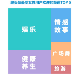 姐姐們興趣廣泛,最關注的五個領域是娛樂、健康養生、廣場舞、情感故事、及旅游。