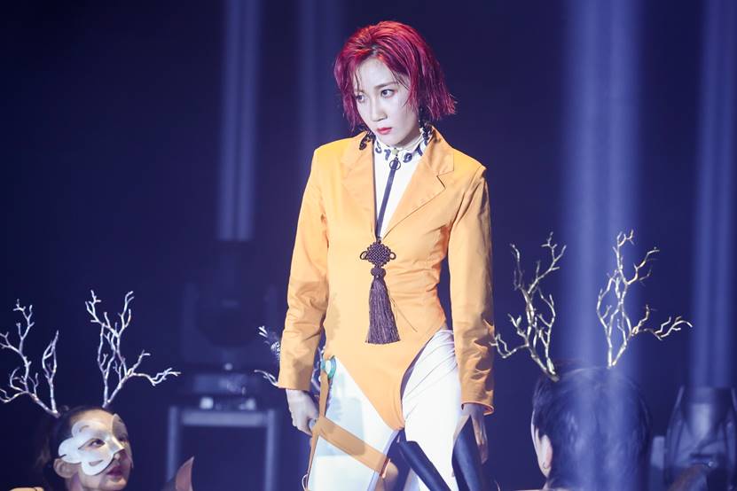 例如,在開場曲《DONE》中,用沉浸式的情景化表演,還原歌曲的哥特式魅力;在歌曲《一筆勾銷》中,用屏風、宮燈、幕布打造適配歌曲的中國風特色;經(jīng)過改編后的慢板《I Don’t Wanna See U Anymore》搭配蠟燭、燭臺和鋼琴,讓歌曲傷感的情緒更加濃厚;滿地花瓣的點綴,給新歌《BUT U》增添了浪漫色彩。
