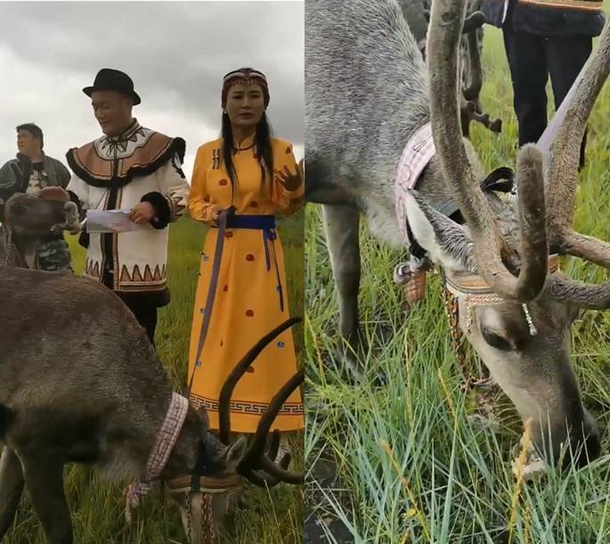 ▲額爾古納濕地景區(qū)的馴鹿出現(xiàn)在拼多多直播間,觀眾被馴鹿的憨態(tài)逗樂。(涂昊 攝)