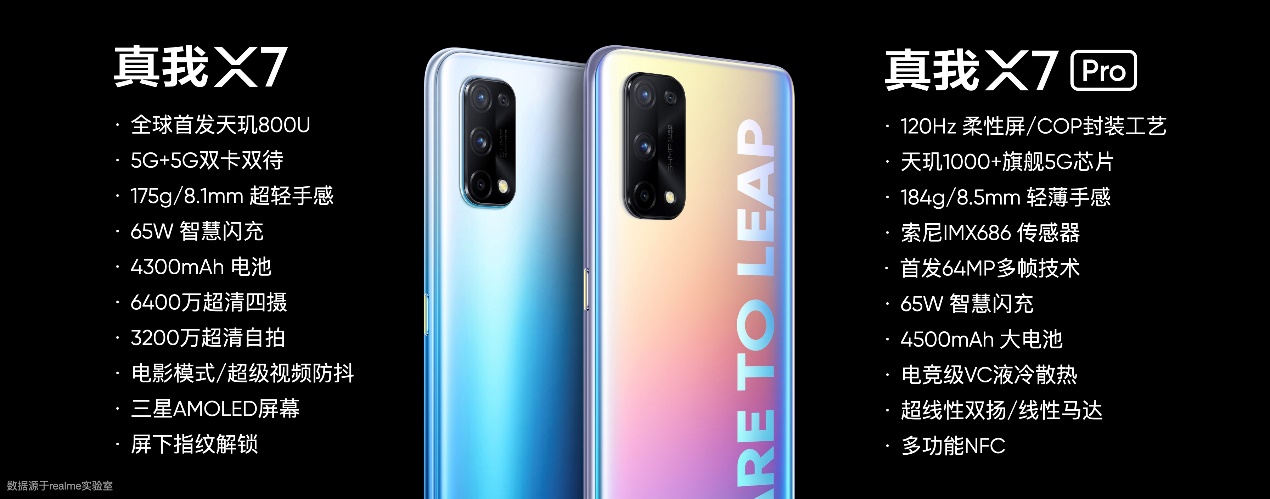 定位于”設(shè)計(jì)越級“,全新的真我X7系列不僅擁有全新潮玩設(shè)計(jì)、輕至175克的輕薄機(jī)身、 6400萬超清影像,全系更標(biāo)配65W智慧閃充。同時(shí)真我X7 Pro更擁有120Hz柔性屏、天璣1000Plus等越級的旗艦性能配置,是專為年輕人打造的C位“潮流單品”。而真我X7,實(shí)力也不容小覷,不僅全球首發(fā)搭載最新5G芯片天璣800U,還是全球首款千元65W閃充手機(jī)。