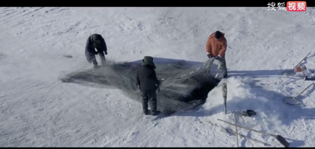 (第六屆(2020)中國無人機影像大賽“最佳故事航拍”《冰之歌·冬捕》視頻畫面)