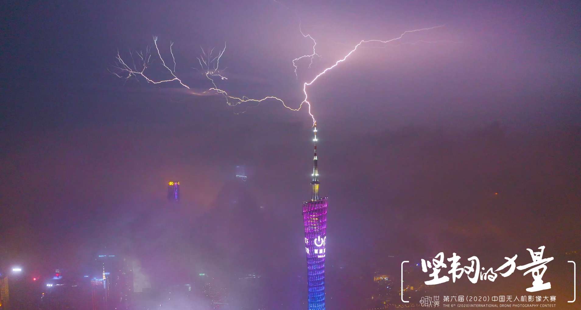(第六屆(2020)中國無人機影像大賽圖片單元自然/探索類一等獎《雷擊廣州塔》)