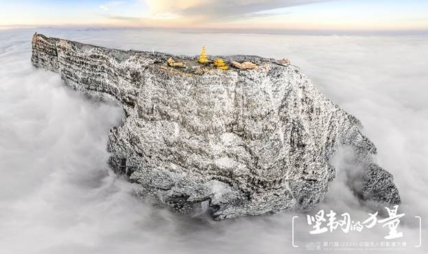 (第六屆(2020)中國無人機影像大賽圖片單元古建/民俗類一等獎《云上金頂 天下峨眉》)