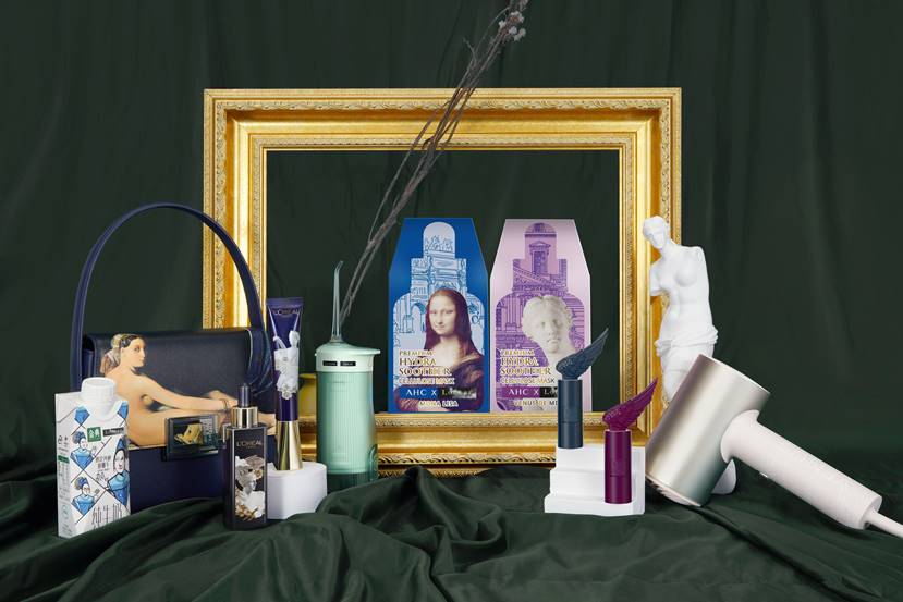 在中國,經典的藝術文創IP同樣正在受到越來越多品牌的青睞。在本次發布會現場,瑪麗黛佳、歐萊雅、伊利、素士、AHC、A.cloud等品牌首次展示了各自與盧浮宮合作的授權商品:從勝利女神翅膀造型的口紅到結合維納斯主題的眼影盤,再到蒙娜麗莎主題的挎包……每一件商品都與盧浮宮的藝術作品進行了創意融合,仿佛將盧浮宮搬到了千里之外的中國;而品牌們亦能在IP的情境里結合自我主張,表達出新的品牌精神和內核。