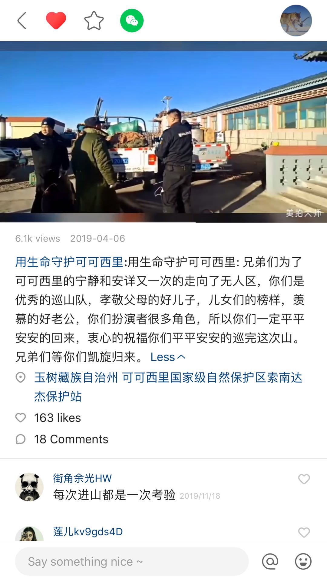 央視報(bào)道的片段中,才索加掏出手機(jī),向記者展示他的快手頁面。才索加的的快手名叫做“用生命守護(hù)可可西里”(快手ID:164772142),對(duì)他而言,“用生命守護(hù)”并不是一句玩笑話,而是一句莊嚴(yán)的宣誓詞和一生的座右銘。