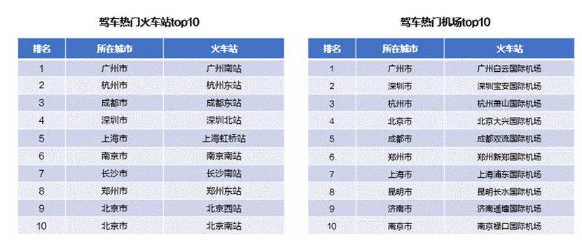 交通樞紐方面,10月1日至7日,排名前三的駕車熱門機場主要有廣州白云國際機場、深圳寶安國際機場、杭州蕭山國際機場等;排名前三的熱門火車站是廣州南站、杭州東站、成都東站。廣東惠州謝崗服務(wù)區(qū)、江蘇常州滆湖服務(wù)區(qū)和廣東惠州汝湖服務(wù)區(qū)位列最熱門高速服務(wù)區(qū)前三位。