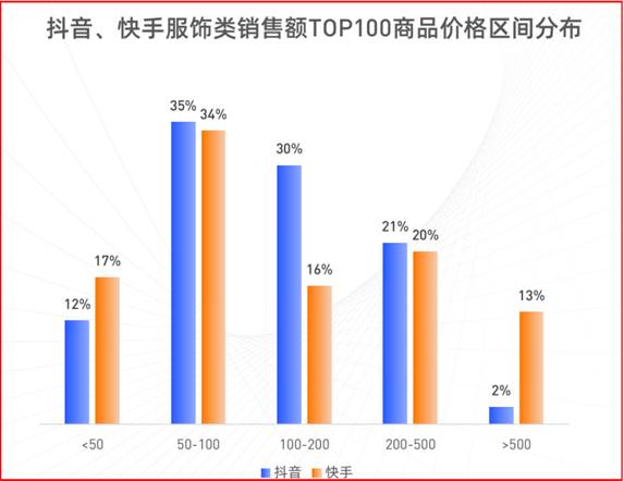 從需求端看,銷售額TOP100的服飾商品中,快手平臺200元以下商品占比達67%。