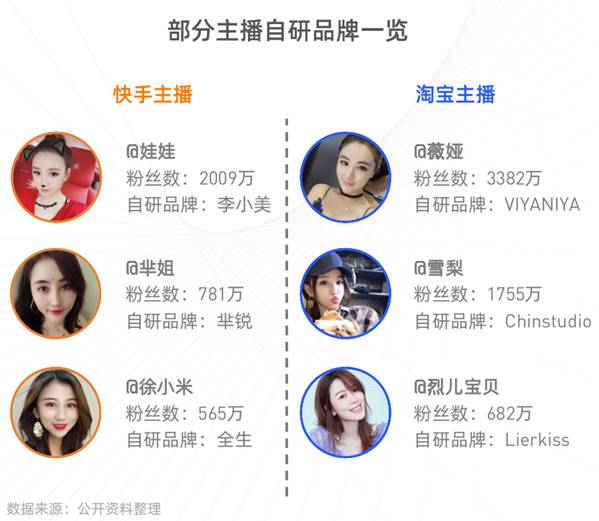 對于已經有一定粉絲影響力的頭部腰部服飾主播而言,品牌化是持續(xù)擴大粉絲影響力、提高粉絲忠誠度和粉絲轉化的重要手段。目前,粉絲數2009萬的快手主播娃娃自研品牌李小美、781萬粉絲的羋姐自研品牌羋銳,565萬粉絲的徐小米自研品牌全生以及淘寶主播薇婭、雪梨等的自研品牌均在增加產品標識性,強化產品認知,拓展外部銷售渠道以及提高直播效果上展現(xiàn)出顯著優(yōu)勢。