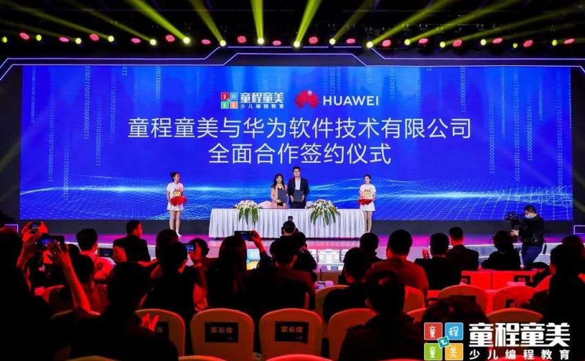 此次發布會,童程童美還與華為云簽署了全面合作協議,華為云向童程童美提供云資源、產品和優質服務。依托各自的行業優勢和技術積累,雙方將在云、人工智能、大數據等領域開展合作探索,共同促進信息技術與教育教學過程的深度融合,賦能教學場景,促進教育均衡,雙方還將定期開展交流互訪。