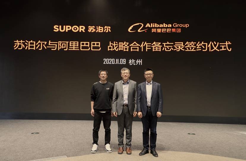 11月9日下午,蘇泊爾與阿里巴巴在杭州舉行戰(zhàn)略合作簽約儀式。浙江蘇泊爾股份有限公司總裁蘇明瑞與阿里巴巴集團(tuán)副總裁靖捷出席了此次簽約儀式。