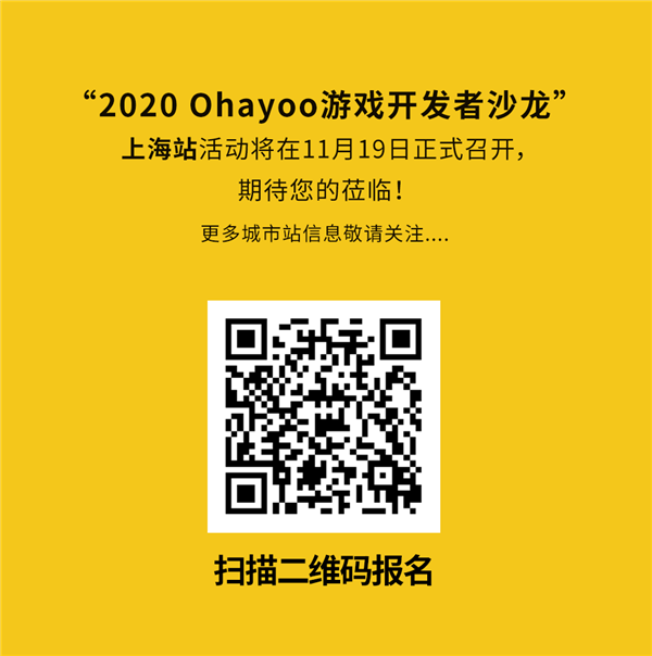 11月19日,Ohayoo將繼續以游戲開發者沙龍為契機,在上海開設分場,與各大開發者深入交流,根據不同的開發者團隊屬性來提供更契合的方案,并且還有專場福利活動等你參與,趕快報名吧~