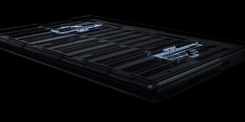 雙矩陣嵌入式離合結構:OPPO X 2021卷軸屏概念機機身內部設計了左右兩塊雙矩陣嵌入式離合結構。屏幕合起時,兩塊托板無縫拼接成一個平面;屏幕展開時,其中一側托板同步滑出支撐展開的屏幕,確保屏幕在任何形態都獲得有效支撐。此外,OPPO X 2021卷軸屏概念機還搭載了由固定外框和滑動外框兩部分組成的全新“動態外框”。滑動外框、背部玻璃電池蓋板在屏幕尺寸變化過程中隨屏幕一起移動,在屏幕展開時提供更可靠的支撐。