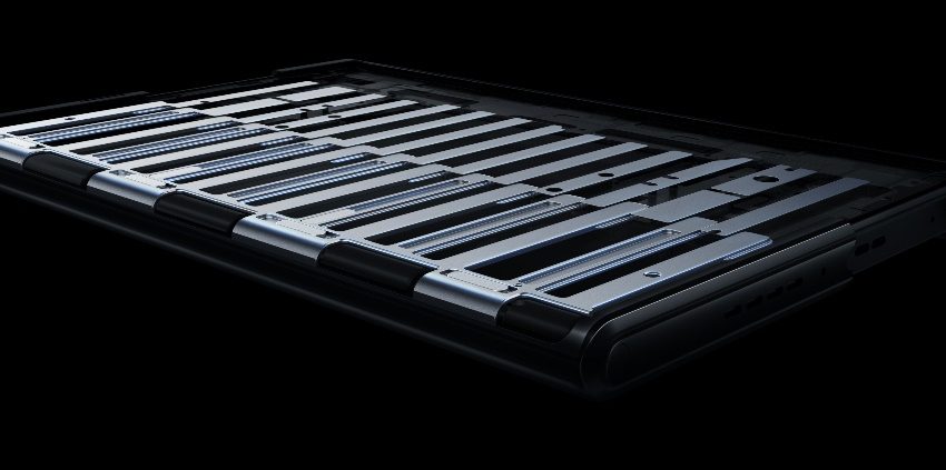 屏幕動態區骨架疊層:為防止卷軸屏在彎曲后因回彈力和屏幕整體厚度增加影響可彎曲程度,OPPO自主研發了屏幕動態區骨架疊層,以高強度的鋼為主要材料,最薄處僅為0.1mm;配合疊層表面蝕刻的線性圖案,在提供足夠支撐的前提下不額外增加屏幕彎曲回彈力,提供如坦克的履帶般可靠的保護。