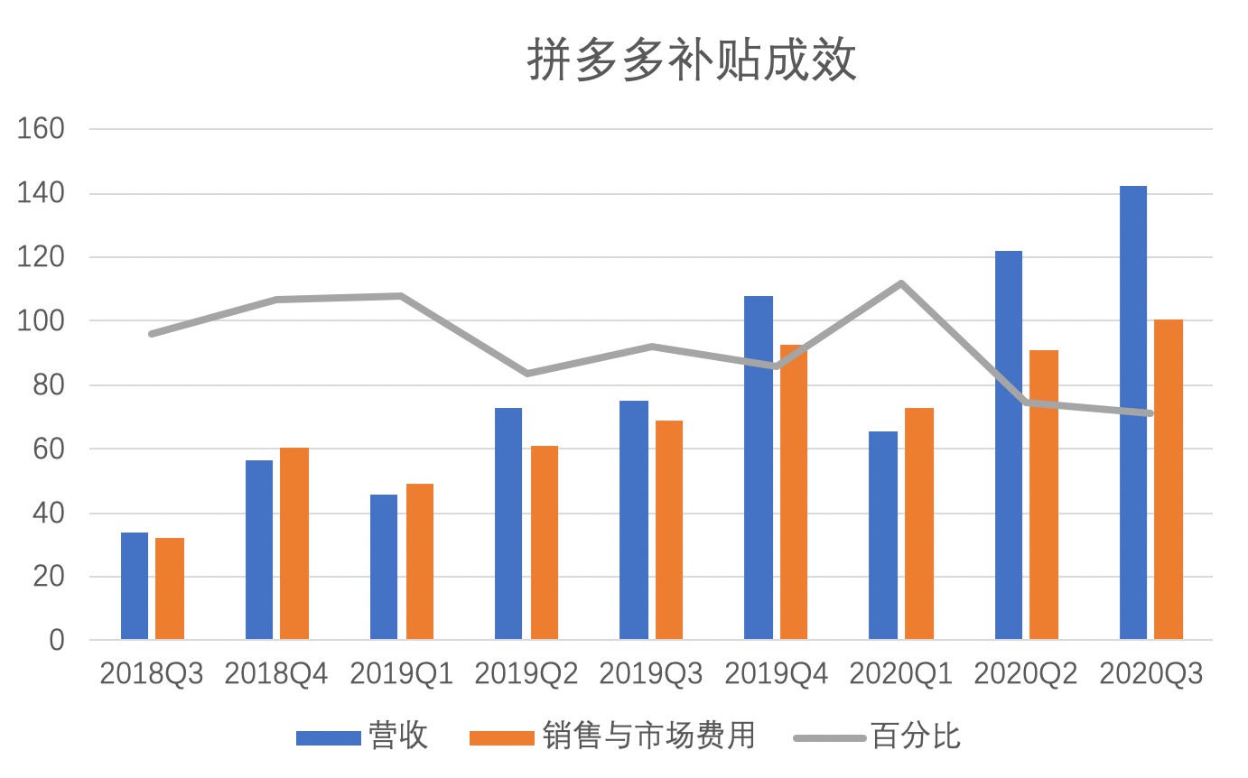 一方面,拼多多在“百億補貼”的投入力度上正在不斷加強。財報顯示今年第三季度,拼多多的銷售與市場推廣費用約100.72億元,同比增長46%,達到歷史最高水平。