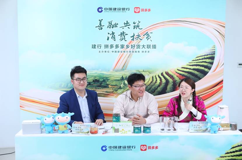 截至當天下午5點,首場建行消費扶貧專場活動在拼多多和善融商務直播間,共計吸引了超過115萬網友觀看,帶動貴州酸辣粉、甘肅蒲公英根茶、青藏高原花蜜等地方扶貧特色農產品實現超過三位數的銷售增長。
