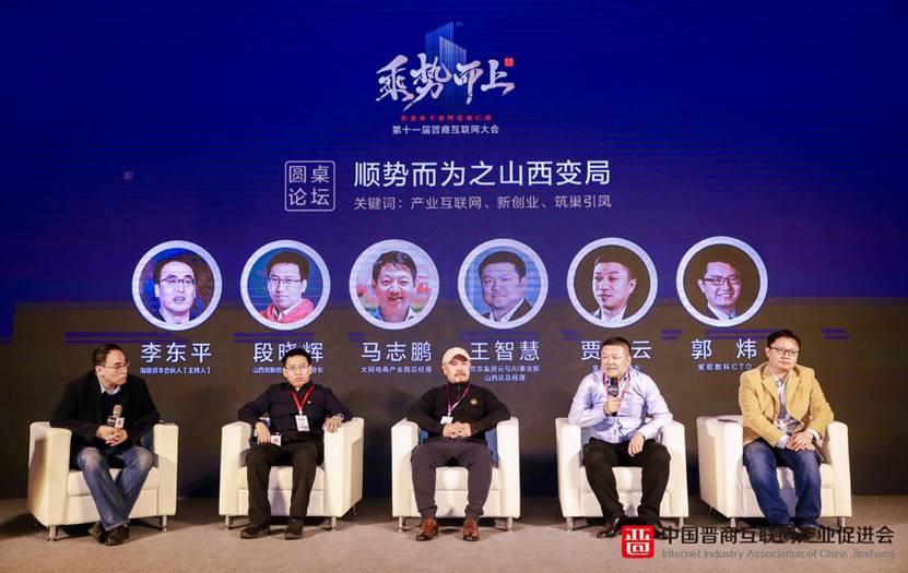 “順勢而為之山西變局”環節,海銀資本合伙人李東平、山西創新創業孵化協會段曉輝會長,京東云山西分公司王智慧總經理,西藏星火科技企業加速器溫海峰總經理,易觀數科CTO郭煒先生,從不同角度圍繞山西機遇、產業互聯網、創新創業等主題,探討未來趨勢發展,號召青年晉商要敢于求變,迎難而上,助力山西產業越來越好。
