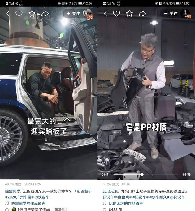 而資深汽車用戶或打算買車的人更聚焦汽車的性能、造型、價(jià)格。在這方面,年度車評(píng)人陳震同學(xué)、此地?zé)o垠、韓路聊車、閆闖說車、YYP顏宇鵬車言論等主播會(huì)通過快手進(jìn)行實(shí)車體驗(yàn)。比如陳震同學(xué)會(huì)點(diǎn)評(píng)汽車造型、車內(nèi)空間、配置內(nèi)飾,相當(dāng)詳細(xì)和專業(yè),吸引了大批粉絲。此地?zé)o垠則更“硬核”,甚至?xí)?duì)汽車零部件進(jìn)行拆解,讓觀眾一窺汽車工藝的奧秘。