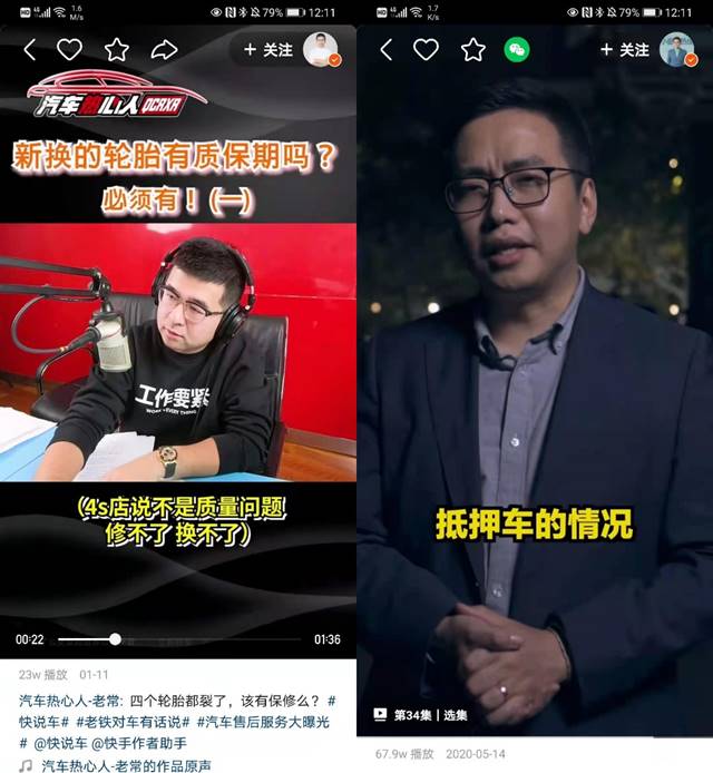 值得注意的是,汽車用戶也逐漸形成在快手等互聯(lián)網(wǎng)平臺(tái)上咨詢相關(guān)問題、維護(hù)自身權(quán)益的習(xí)慣。比如汽車熱心人-老常、車圈崔哥、汽車小辣椒曉明、主持人星寧、大衛(wèi)侃車這五位“汽車熱心人”,都是聚焦汽車維權(quán)的頭部主播,致力于科普汽車購買維修和交通事故中如何用法律武器保護(hù)自己。