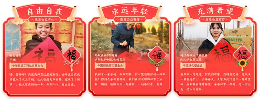 據(jù)了解,這是支付寶專門上線的“公益福簽”,致敬過去一年為公益事業(yè)做出貢獻(xiàn)的普通人。這組公益福簽由9個(gè)公益故事組成。他們有來自螞蟻森林73歲種樹人送出的“永遠(yuǎn)年輕”福、抗擊疫情時(shí)勇敢逆行的武漢護(hù)士送出的“充滿希望”福等9個(gè)福簽。每個(gè)福簽背后都濃縮著支付寶愛心網(wǎng)友過去一年的公益行為,致敬普通人在扶危濟(jì)困、環(huán)保公益等方面做出的貢獻(xiàn)。
