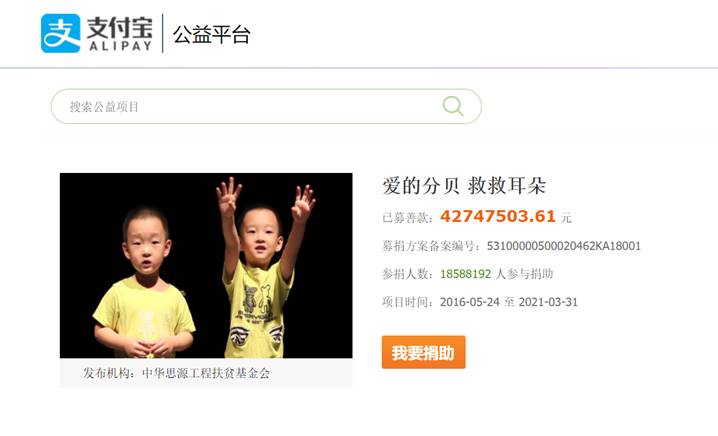 12歲的江西聽障少年子珺就是互聯(lián)網(wǎng)公益的受益者。2019年底,子珺突發(fā)大前庭導(dǎo)水管綜合征,失去了正常的聽力。子珺的哥哥自小就被診斷為一級(jí)聽力殘疾,付出超出常人數(shù)倍的努力,刻苦自學(xué)竟考上一本院校。但子珺又突然被確診為聽力障礙,而人工耳蝸手術(shù)需要20萬費(fèi)用,對(duì)于一個(gè)靠工資維系生活的家庭來說,無疑是雪上加霜。