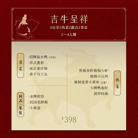 尤為值得關注的是,今年諸多商家考慮到留守本地的消費者需求,因地制宜推出了年夜飯小份套餐和半成品套餐,其中不乏多家知名連鎖品牌和餐飲老字號。例如大龍燚火鍋推出了多款百元左右的火鍋單人套餐,南京大牌檔推出了2至4人份的小套餐,北京老字號紫光園則推出了全新定制的牛年套餐。