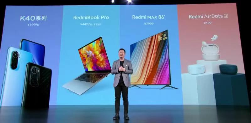 速途網2月25日訊(報道:喬志斌)今日,小米集團旗下品牌Redmi召開K40雙旗艦發布會,正式發布Redmi K40、K40 Pro和K40 Pro+旗艦手機,全新升級的RedmiBook Pro 14、15筆記本電腦,超大尺寸Redmi MAX智能電視86″和Redmi AirDots 3無線耳機。
