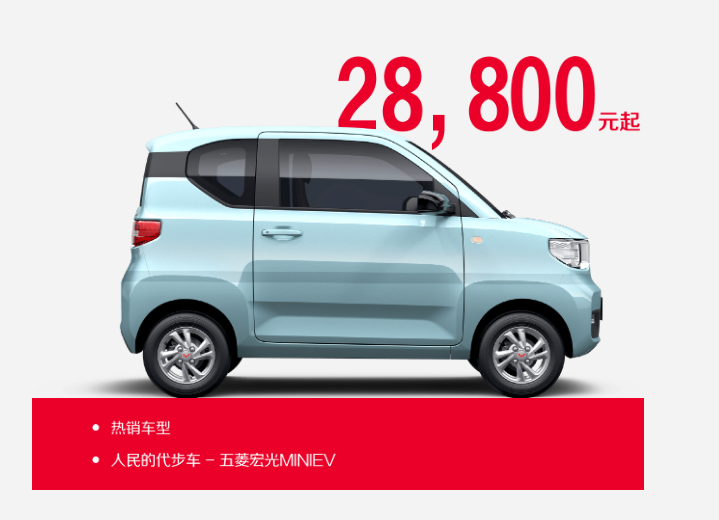 五菱宏光官網顯示,“人民的代步車”五菱宏光MINIEV官方售價為28800元。