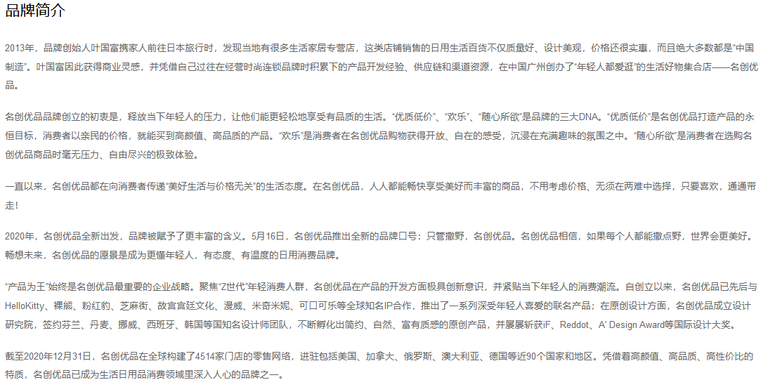 在名創(chuàng)優(yōu)品官網(wǎng)的品牌介紹中,其直觀地向消費者強調(diào)著自身“價廉物美”的特質(zhì)。然而近年來,層出不窮的產(chǎn)品質(zhì)量問題,也讓其屢受多方質(zhì)疑。